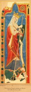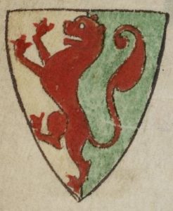 Joanna, the female lead in the novel was a granddaughter of the great William Marshal, Regent of England in the early part of Henry III’s minority from 1216 to 1219 when William died. The Marshal blazon was a scarlet lion on a green and gold background.